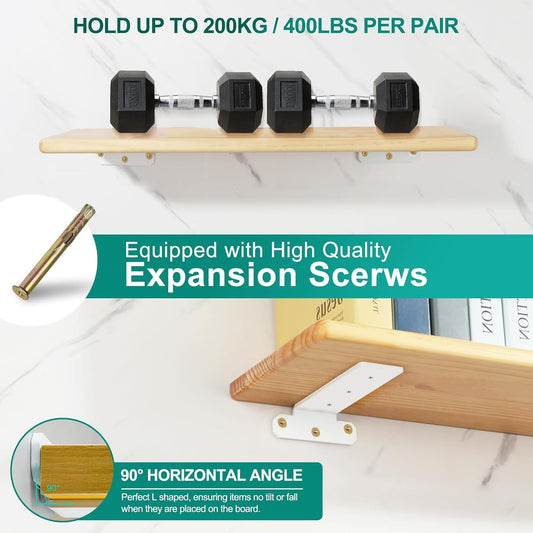 SAYAYO Shelf Brackets Heavy Duty 5MM Thick White Angle Brackets Metal L Brackets for Shelves, Wooden Shelf Brackets & Supports Wall Hanging Corner Brace, 200mm*150mm, 4 Pack, EJZX23108W-4P