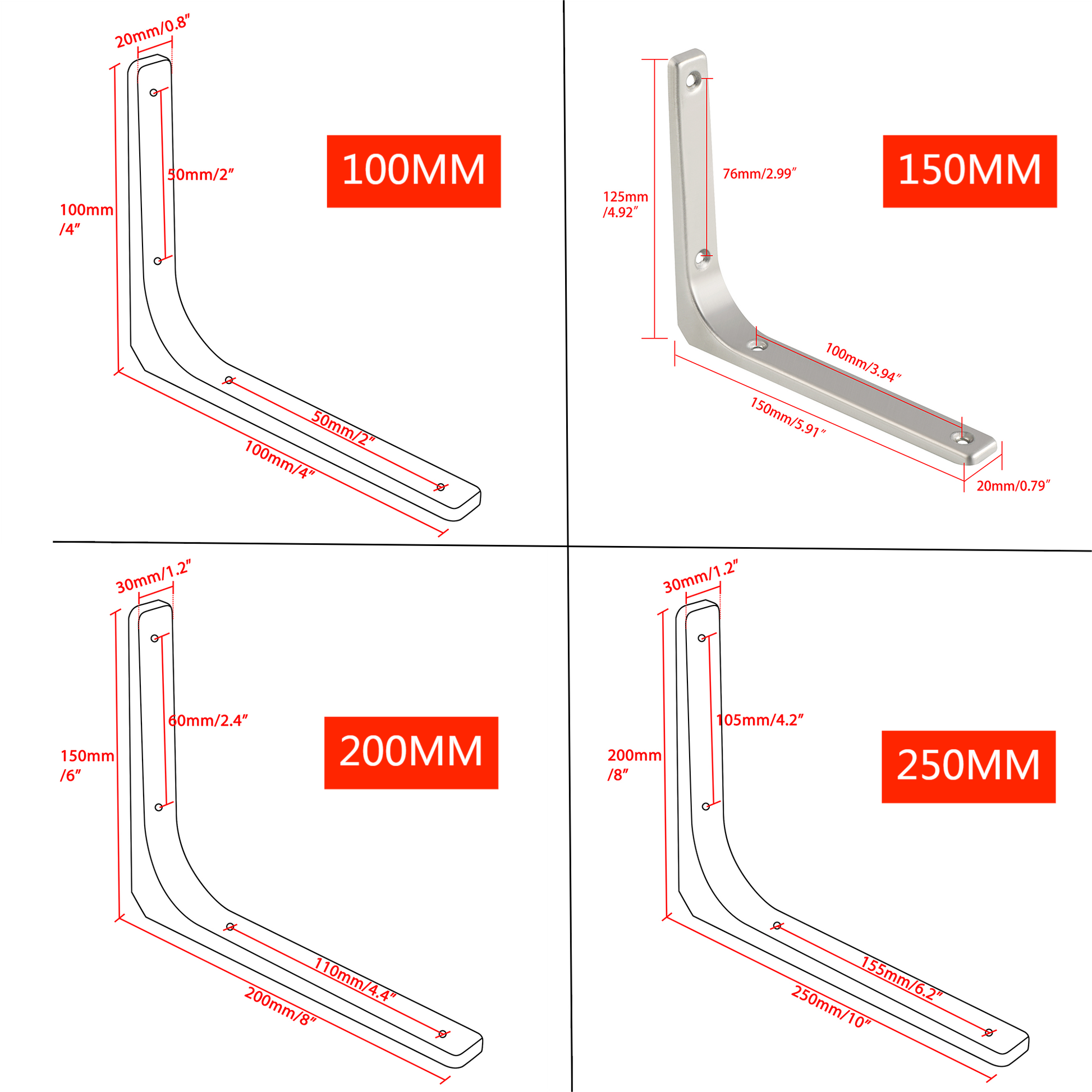 Sayayo L-shape Shelf Bracket Corner Brace Angle Bracket Shelf Support Wall Hanging White/ Brushed/ Black Finished, 100MM-250MM