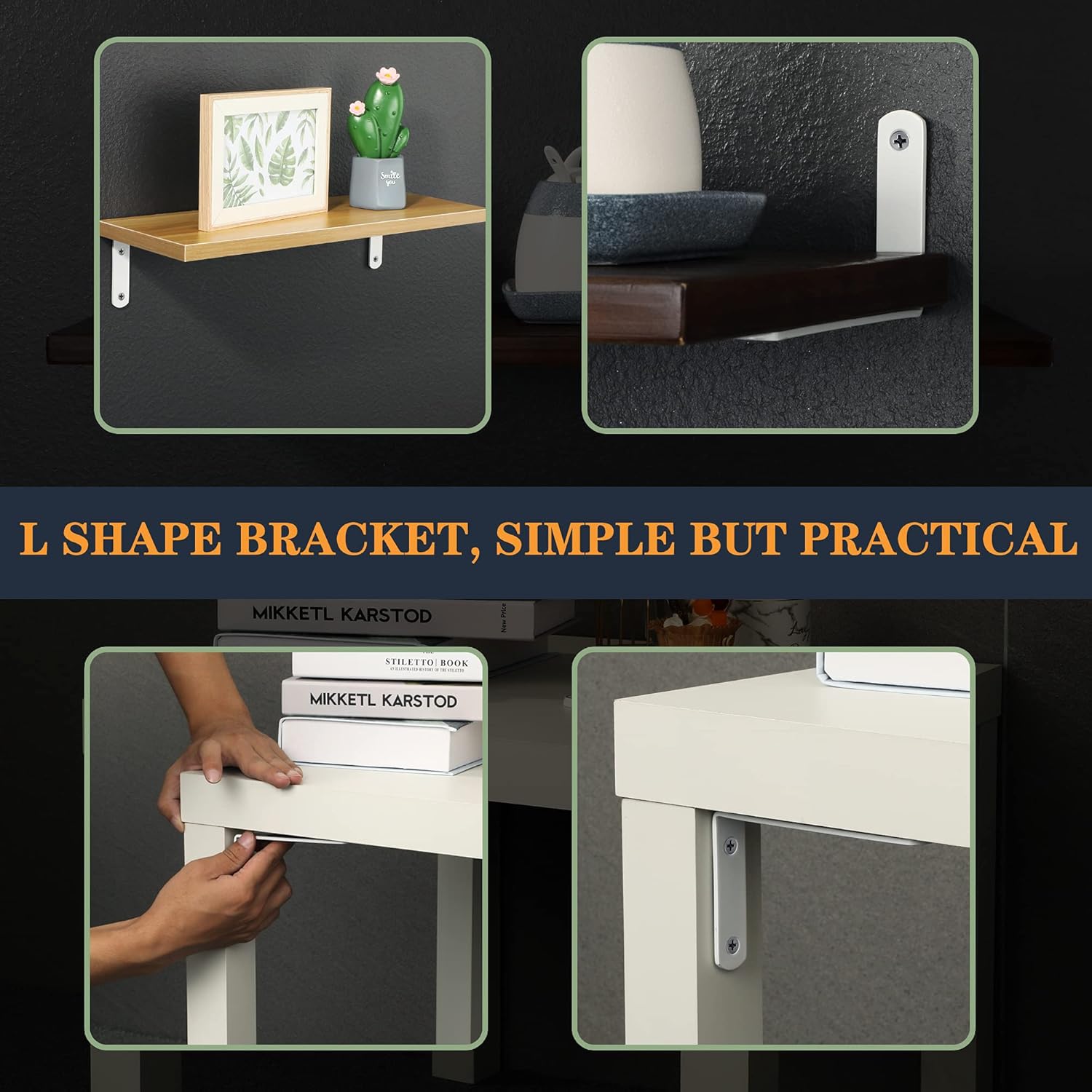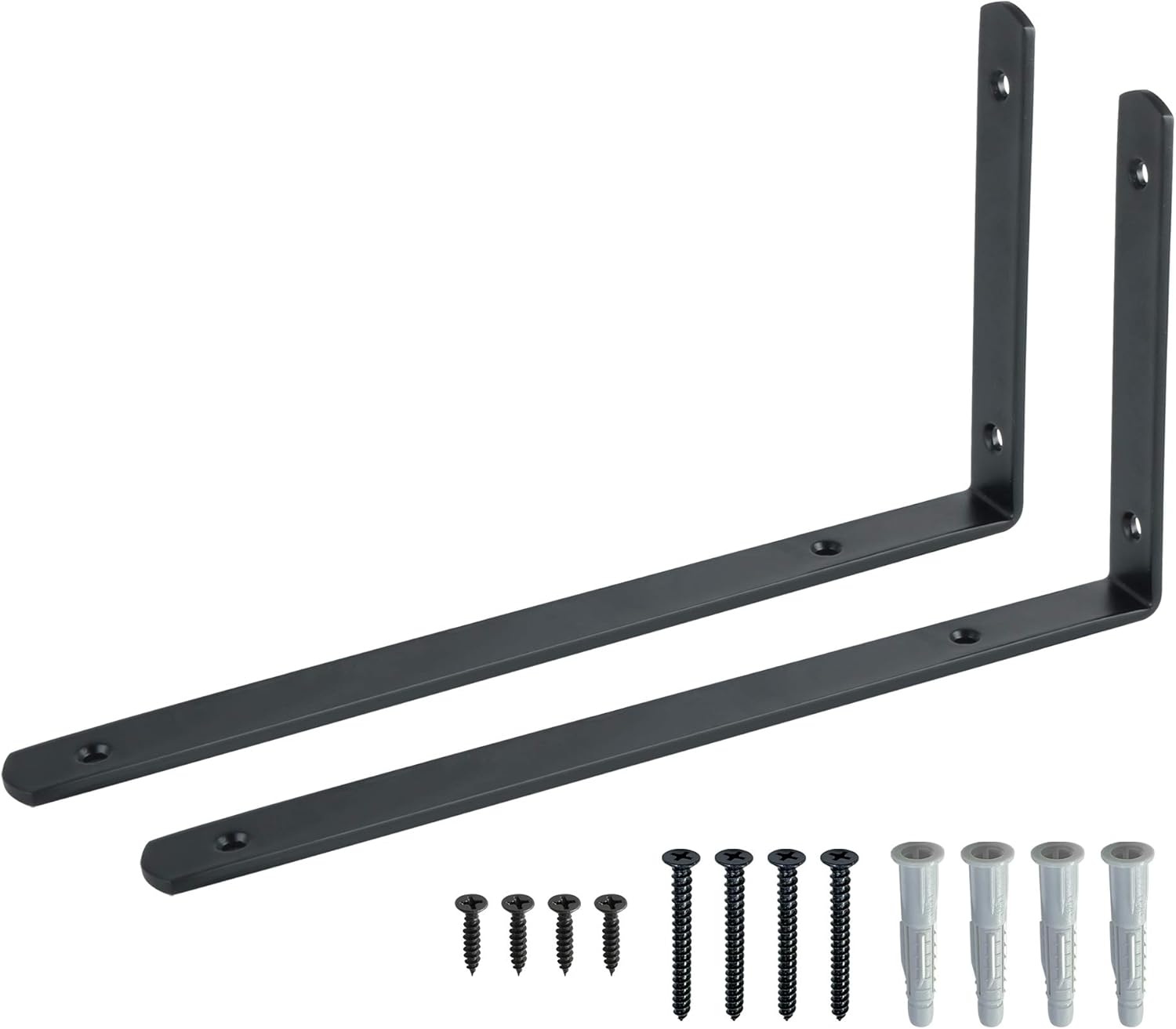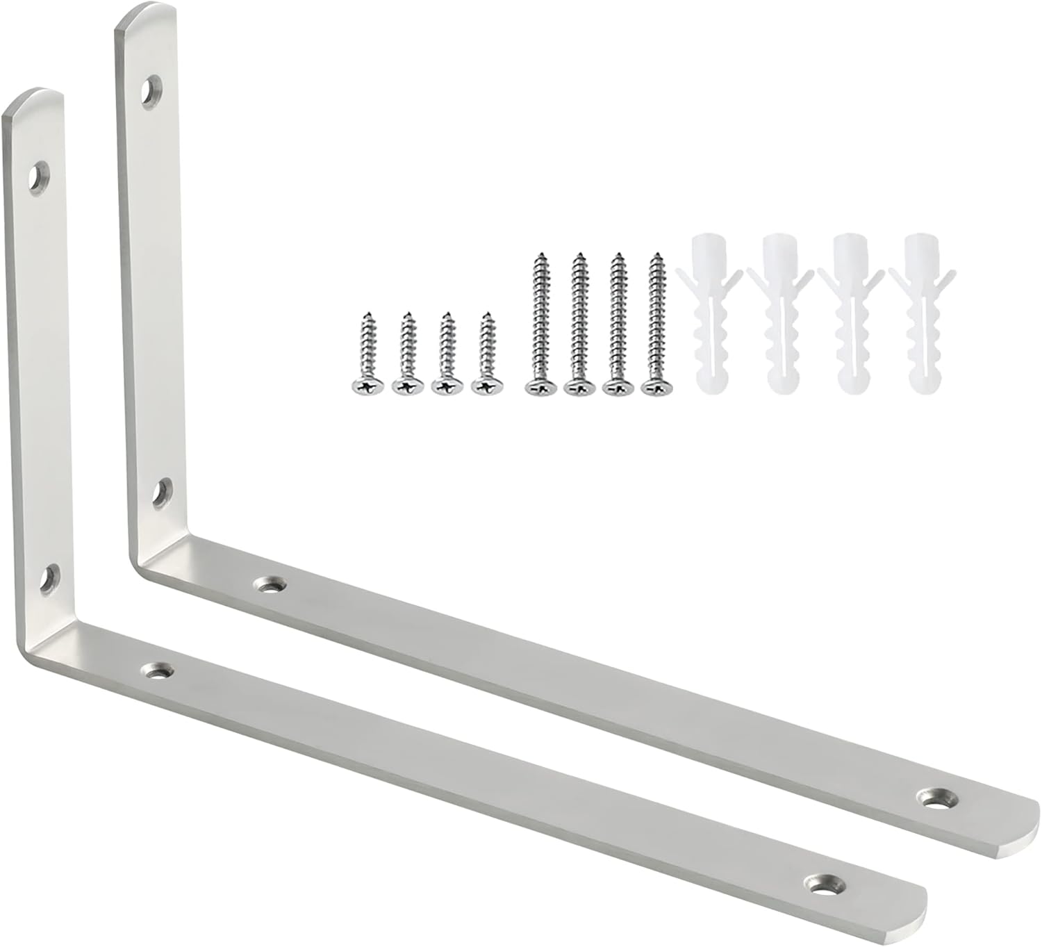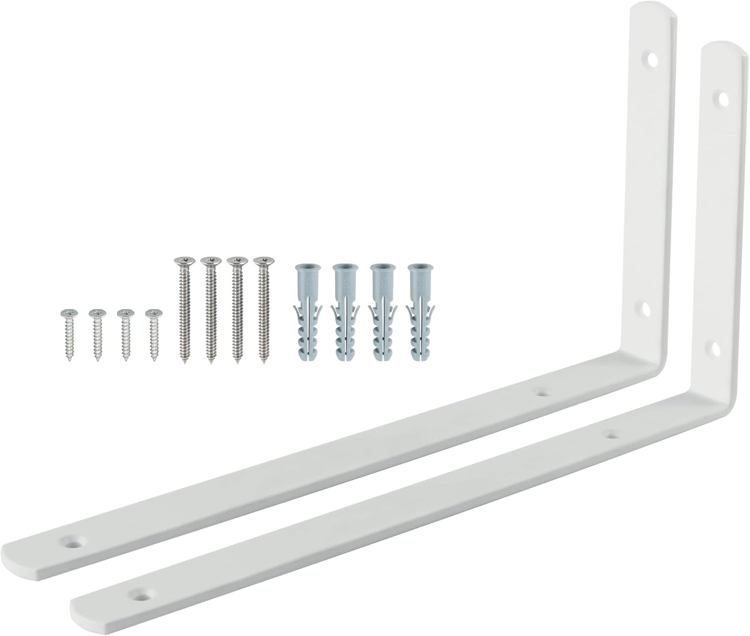 EASY TO INSTALL - Package includes: brackets, wall plugs, and screws, allowing you to install the shelf brackets immediately after receiving the package. Thickness: 3 mm/ 4 mm.