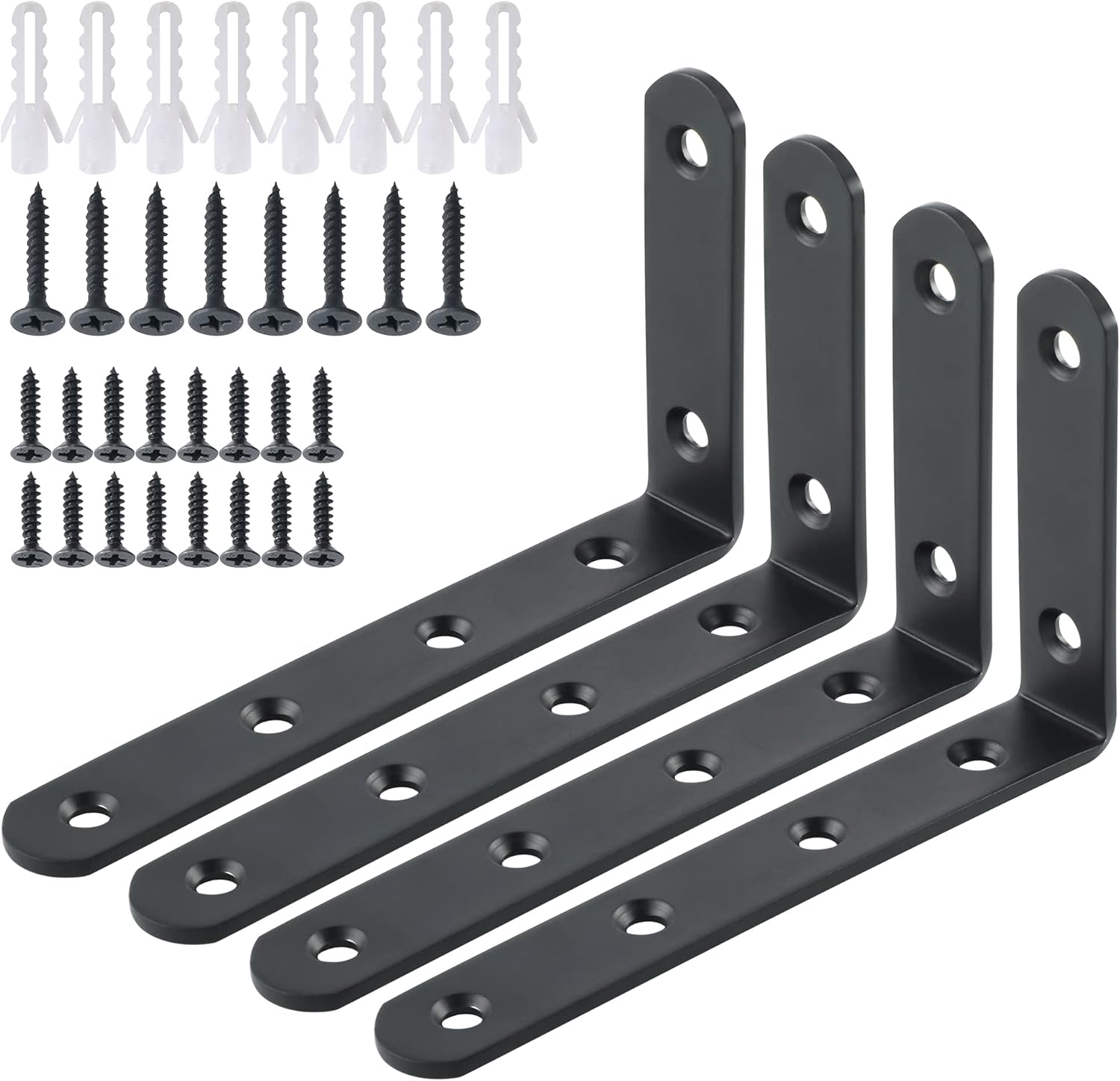 Sayayo L Shelf Bracket Corner Brace Angle Bracket Shelf Support Wall Hanging, Stainless Steel, 150MM-300MM, 2PCS/ 4PCS