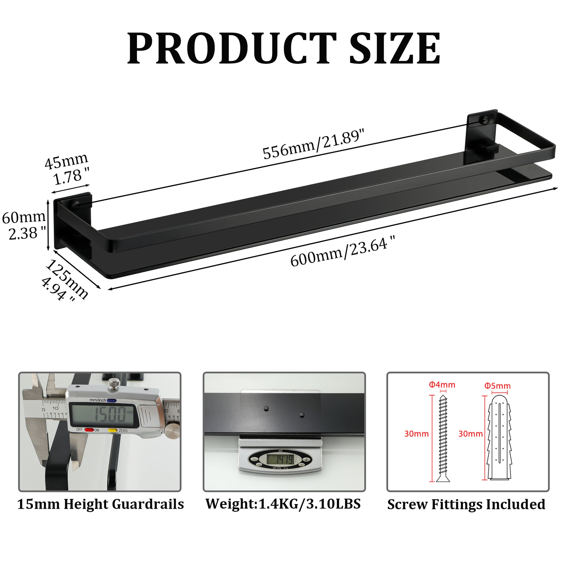 • LARGE STORAGE SPACE- 380MM/ 500MM/ 600MM length shelf is a great choice to place your bathroom items such as shampoo, conditioner, facial cleanser and skin care products. Widely used in the bathroom, kitchen, lavatory, living room, balcony, etc.