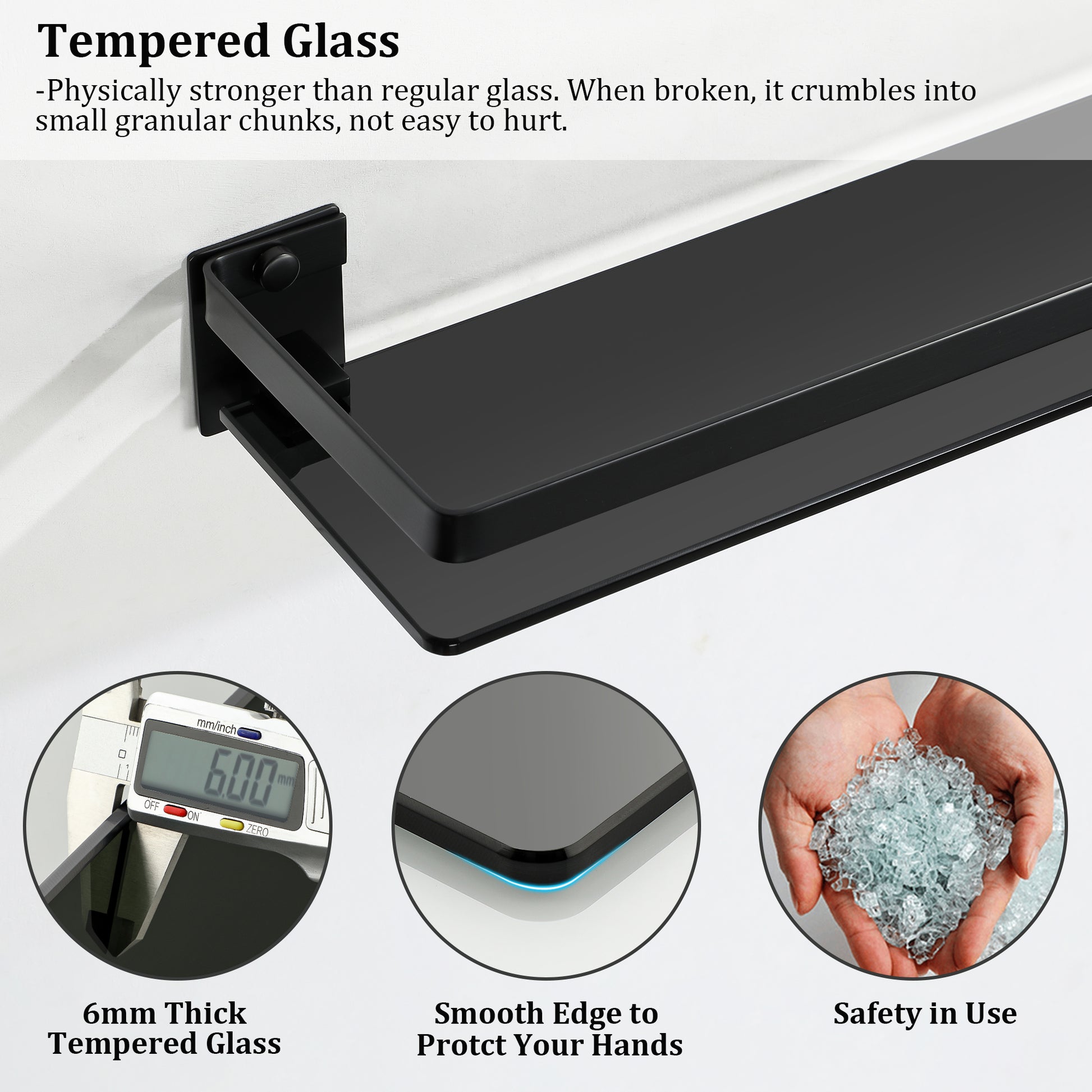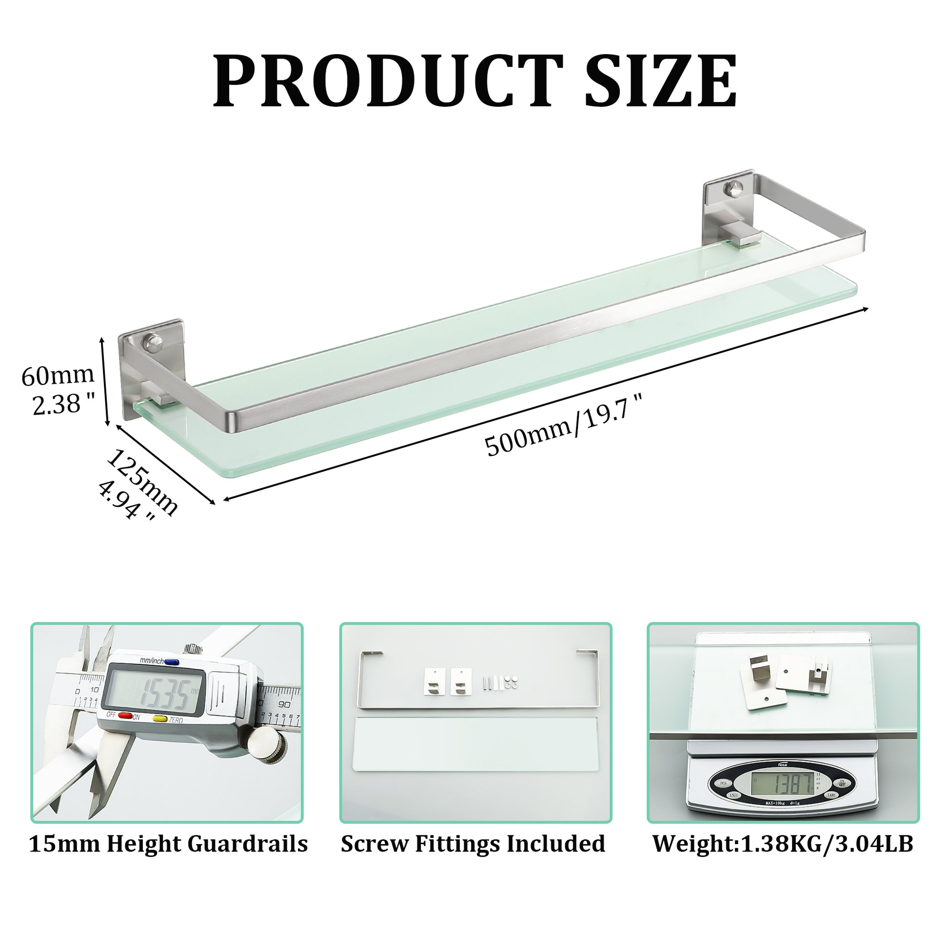 SAYAYO Bathroom Shelf Tempered Glass Shelf Wall Mounted, Black/ Brushed/ Gold Shower Storage with SUS304 Stainless Steel Rail, 38CM/ 50CM/ 60CM Length