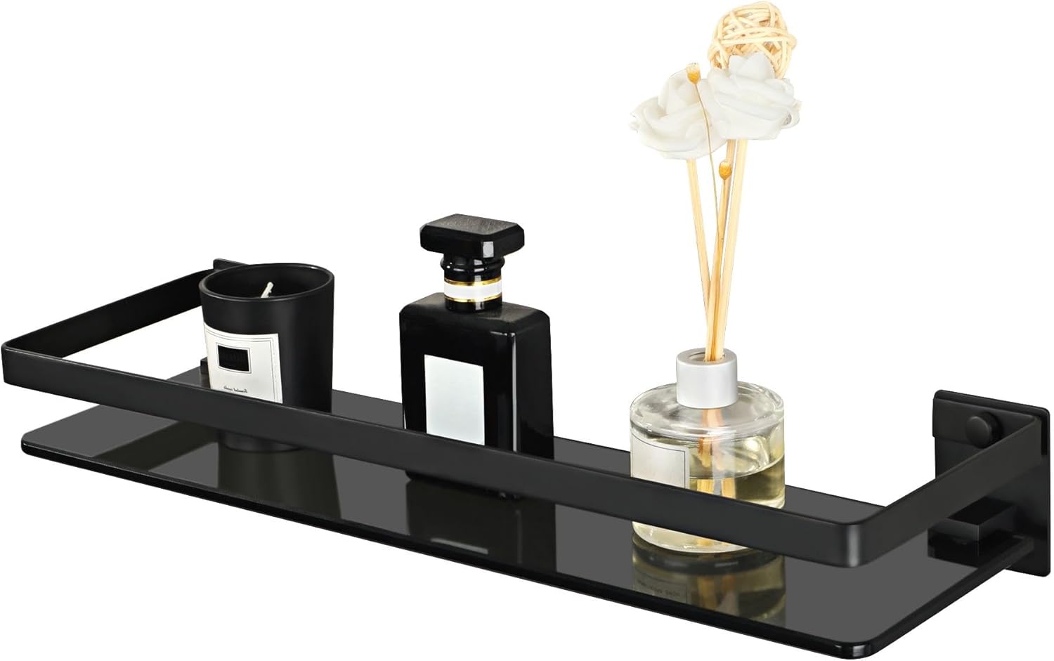 • MINIMALIST DESIGN - Clear/ Black glass shelf have neat and elegant appearance, standing out in any surrounding. 1-Tier design creates the effect of floating shelf.