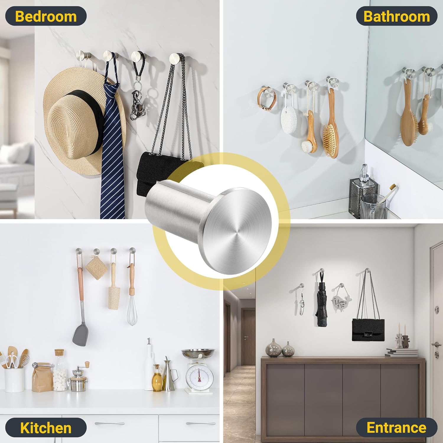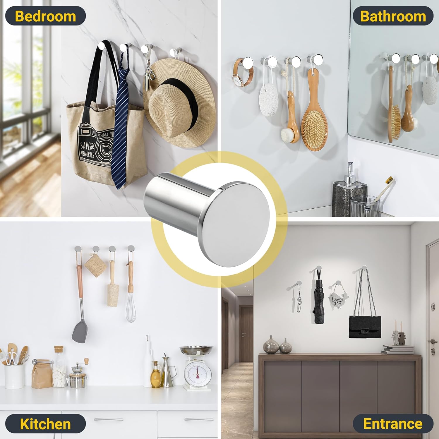 - Wide Application- A perfect choice for your home to hang towels, clothes, keys, hats, necklaces, bags or anything you want. Ideal for using in bathroom, bedroom, living room, kitchen, entrance and so on.