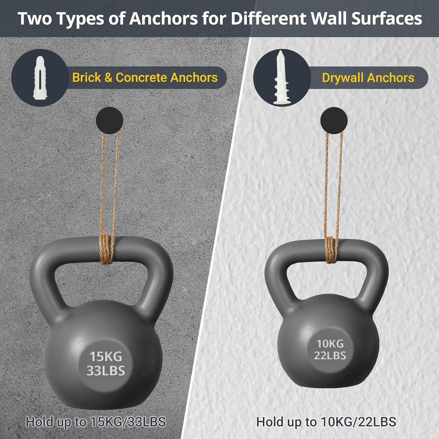 - Strong & Sturdy- Supplied with 2 types of anchors. Each hook can hold up to 15KG for the brickwall and 10KG for the drywall. Designed with screw mounting on the back , firm and stable. No need to worry about falling off.