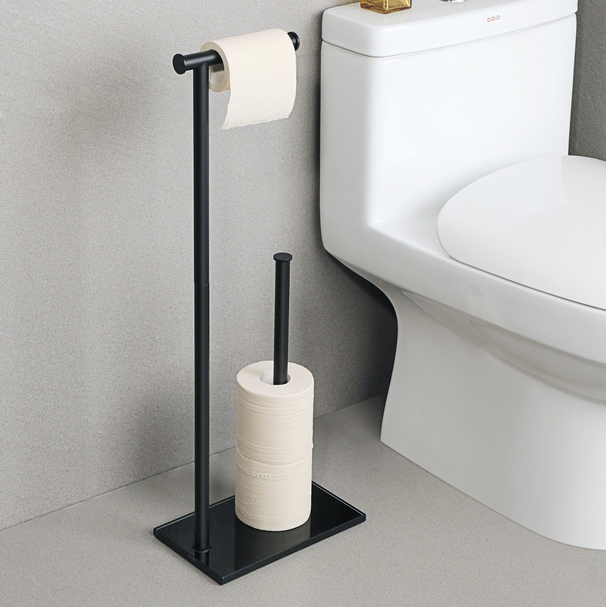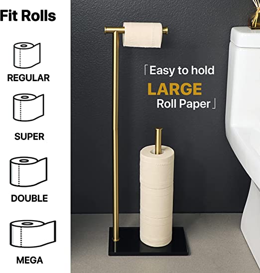 - 3 in 1 Design - 70CM height pole is the reasonable size for taking roll paper easily and you could place the roll paper on one side and hang brushes or bath ball on the other side. The lower pole can store 3-4 rolls of paper.