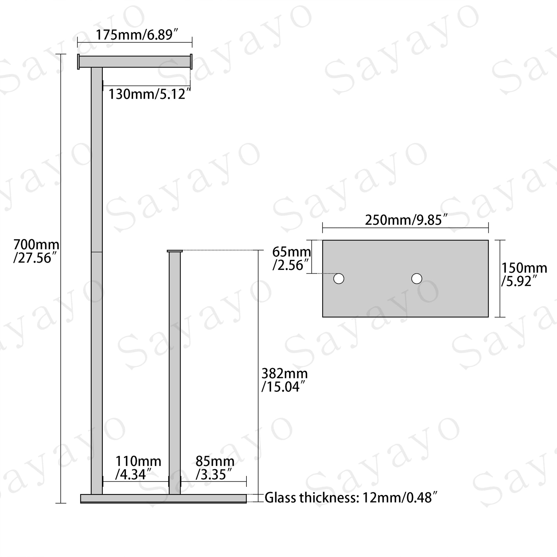 Sayayo Free Standing Toilet Roll Holder with Double Pole (Rectangular Base)