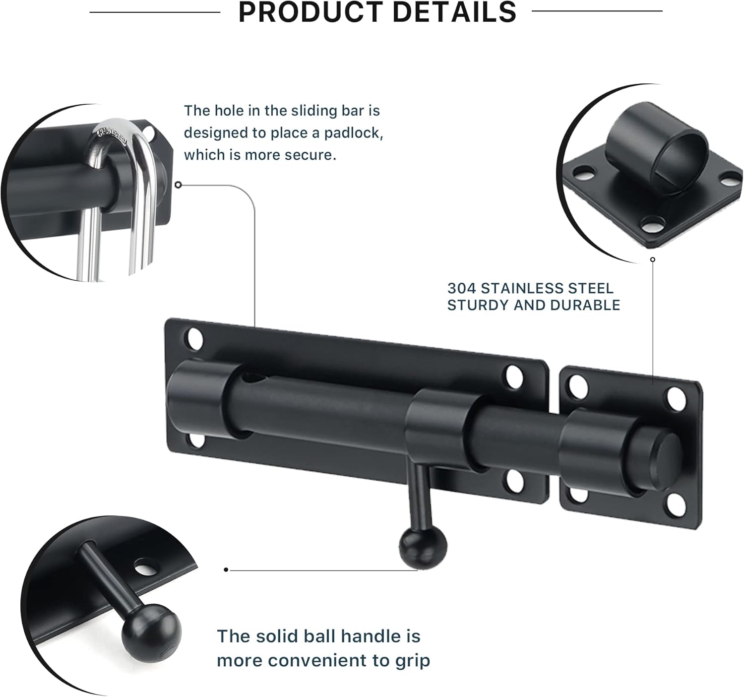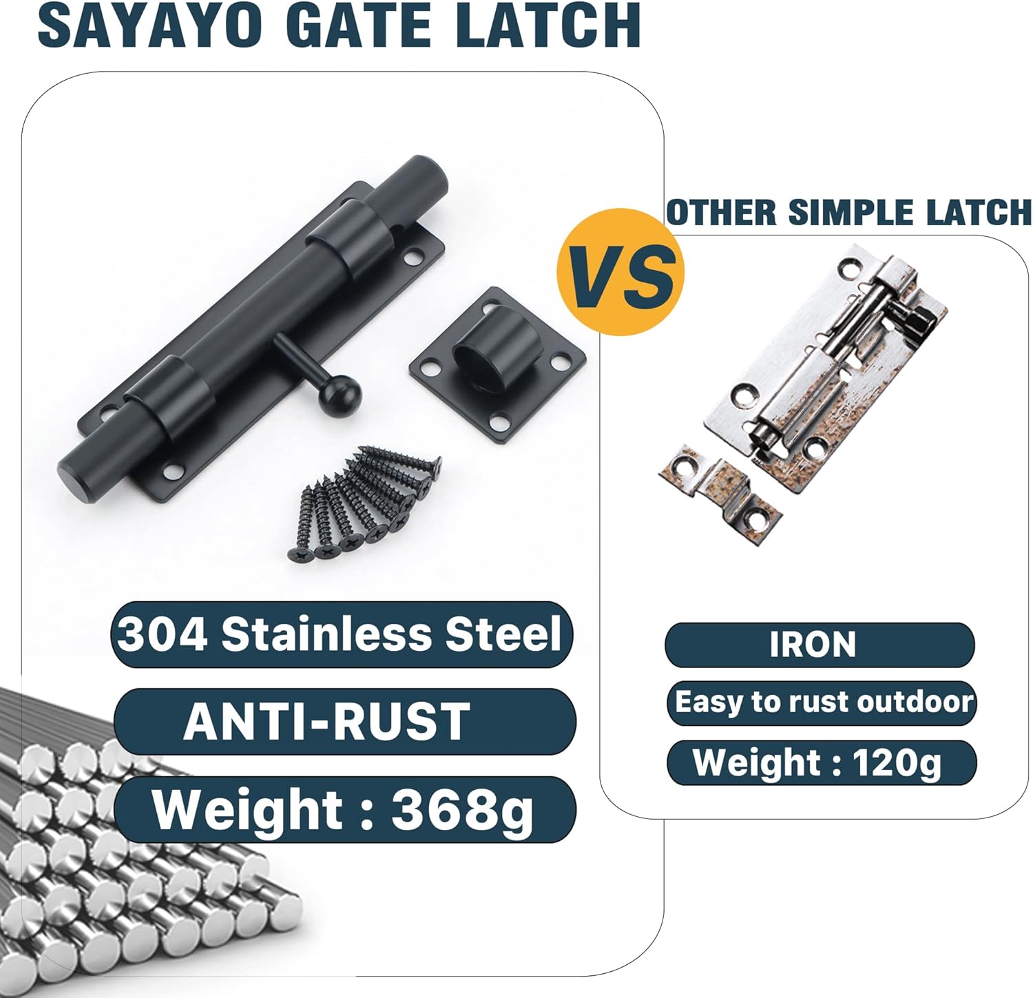 <PRODUCT POINTS>- PREMIUM QUALITY : Latches are constructed from SUS 304 stainless steel, which is corrosion resistant. Thickened solid bolt, strong and durable.