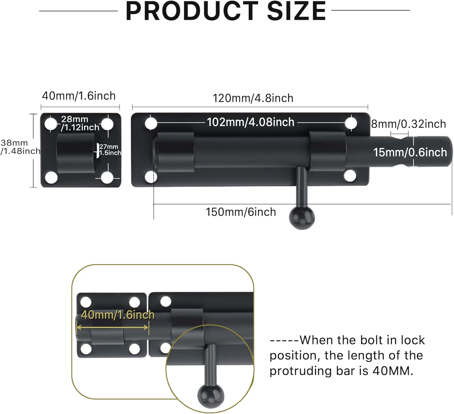 - EASY TO INSTALL : Not Include Padlock. Supplied with screws, easy to install and maintain. Size:Solid bar: 16MM Dia., 150mm length; Padlock Hole Dia:8mm/0.32 inch.