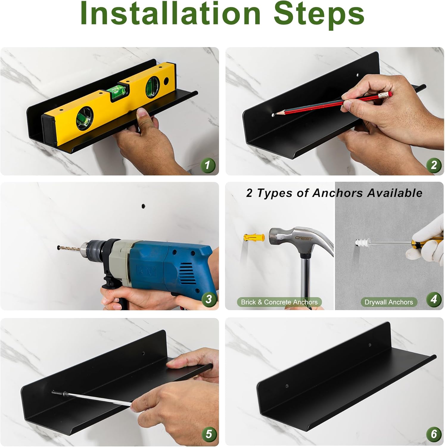 - Stable & Lightweight: Crafted from premium aluminum, these floating shelves are both lightweight and sturdy, offering a long-lasting storage solution for any room. Minimalist design also complements any decorating style.