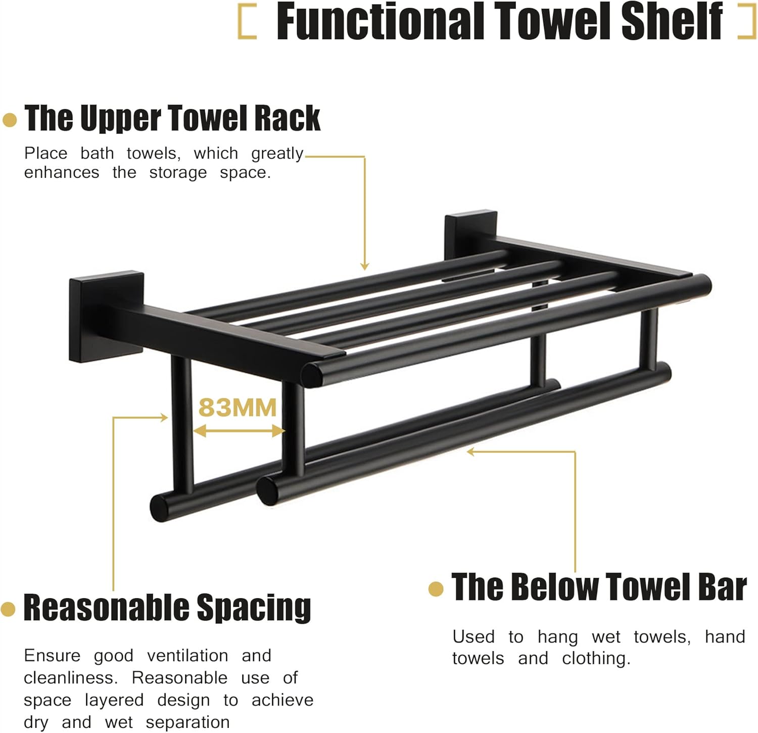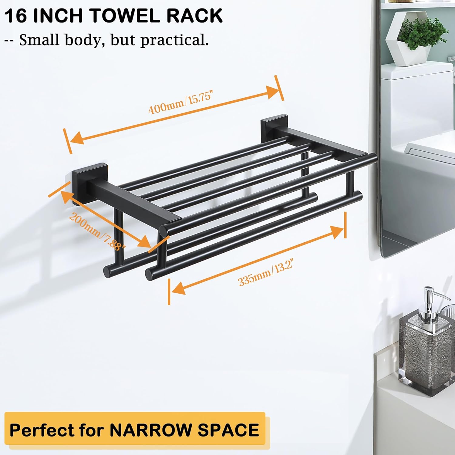 • Minimalist Design: Square Bases design with double towel bars and whole body without screw hole highlight a simple and elegant appearance, suitable for diverse styles of decoration in home and hotel.