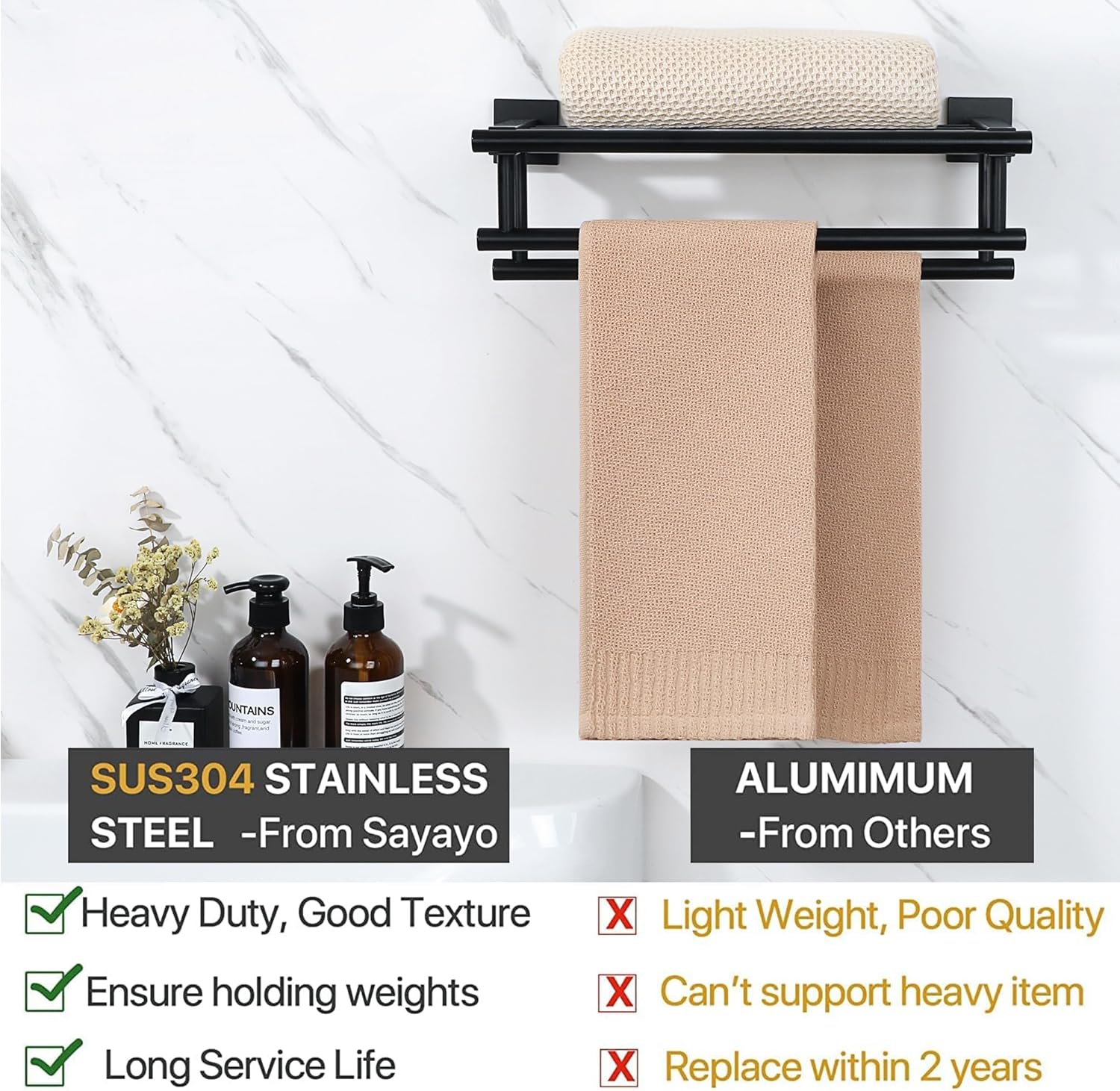 Sayayo Towel Rail Wall Mounted Bathroom Towel Shelf Towel Holder, SUS304 Stainless Steel Towel Rack 16 Inch 20 Inch 24 Inch 28 Inch
